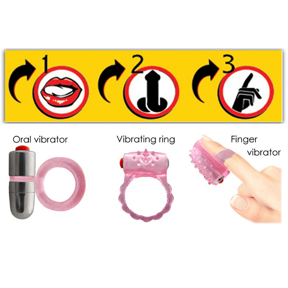 Multiple uses with quality that lasts. This patented toy includes a robust motor, supported by a turbo charger with a custom sleeve for use as a vibrating ring, oral vibrator and finger vibrator.