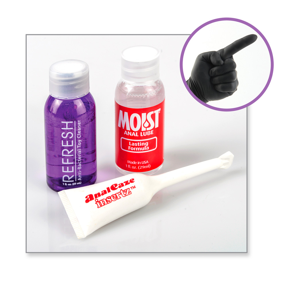 The key to anal play is to take it slow! Attempting anal penetration before you are properly aroused can be unpleasant, so allow yourself to relax in order to enjoy the experience. Fingerplay is a great way to relax the anus, so use an included finger sleeve to massage the area. The anus and rectum do not have a natural lubricating system like the vagina, so use plenty of the included Moist Anal Lube to reduce friction and increase pleasure.