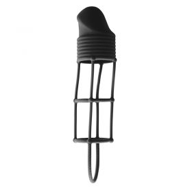 Make your best asset the center of attention with this black, velvety soft penis sleeve with a fascinating lattice pattern and testicle ring.