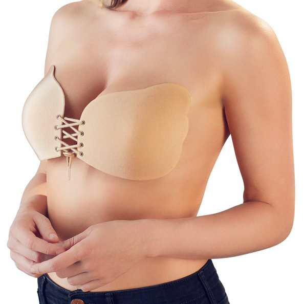 Skin-coloured self-adhesive bra with lacing at the front to find the perfect fit.