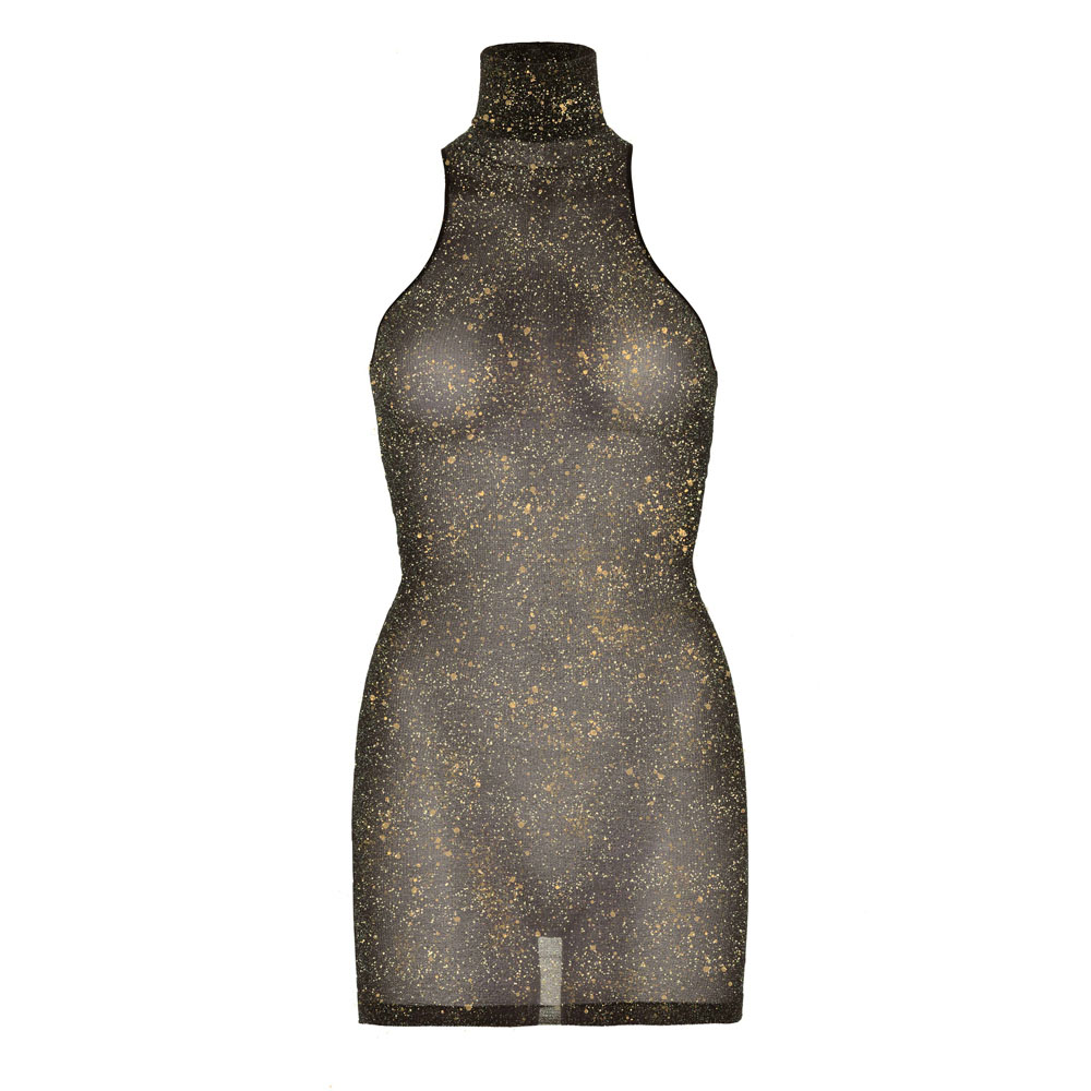 Lurex shimmer spandex high neck mini dress. One Size UK 8 to 14.