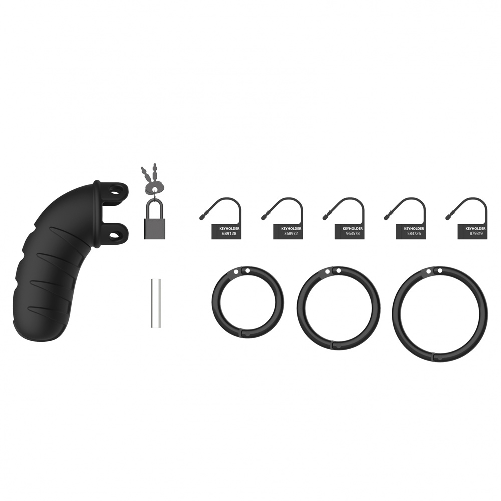Three polycarbonate rings in different sizes and distance pieces are completely customizable for the perfect fit! A metal lock or tie-wrap lock can easily close the cage. The included tie-wrap locks ensure that they will not trigger the alarm of metal detectors at parties, festivals or even airports! As hygiene is very important while wearing a cage, the silicone Man Cage series is equipped with a variety of vents and a urination opening.
