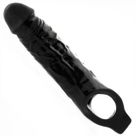 More for the smaller than average sized penis this sleeve will add girth and 1 inch in length to your penis. Its super soft sleeve also has a removeable powerful vibrating bullet for added stimultion for you and your partner. It also has a stretchy ring to fit around the testicles to help hold it in place.