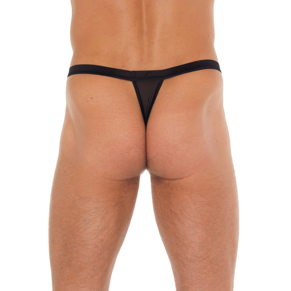 Mens Black G-String With White Pouch. One size