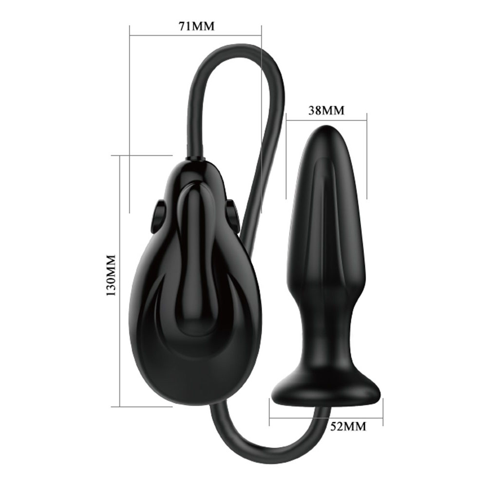 The black inflatable butt plug has a smooth surface and is therefore easy to insert. After insertion, carefully use the hand pump to inflate the butt plug. The anal plug has multiple vibration speeds, which can be adjusted with the hand pump. There is a pressure relief button on the hand pump, the air exits the butt plug when you open it.