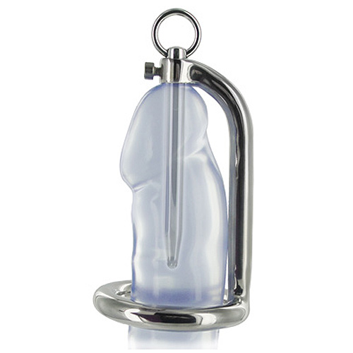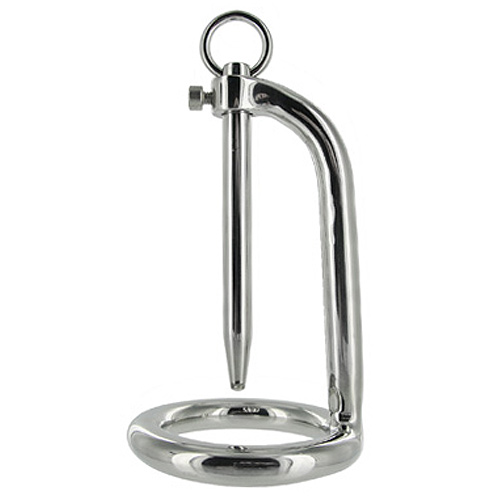 Keep your partner on lock down with this stainless steel Cock Ring and Urethral Plug! They will be trapped and unable to achieve an erection with their shaft impaled on the cool steel penis plug that you secure into place with the included hex key. With the ring snug around their balls, they are effectively imprisoned and at your mercy for their relief. The urethral pin can be adjusted in position so that you can choose the length that is inserted, and can even be removed from the device entirely to be used alone, if desired. It features a grip ring for easy retrieval.
