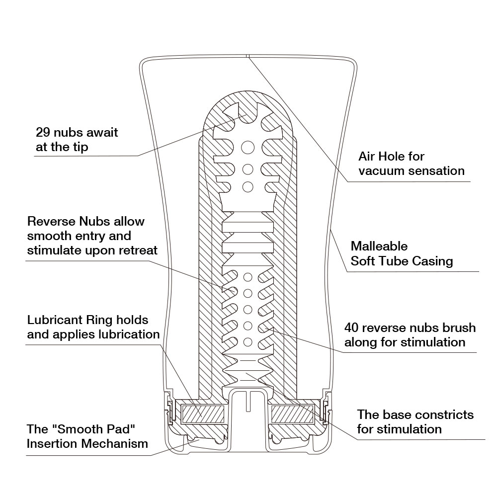 Now with a new soft tube, this cup gives you complete control over the tightening sensation. Feeling that suits you, controlled by how tightly or how lightly you grip the cup. Enjoy a wide variety of sensual sensations from rubbing, stroking, pressing, etc. One remarkable feature is the ability to squeeze out after ejaculation.
