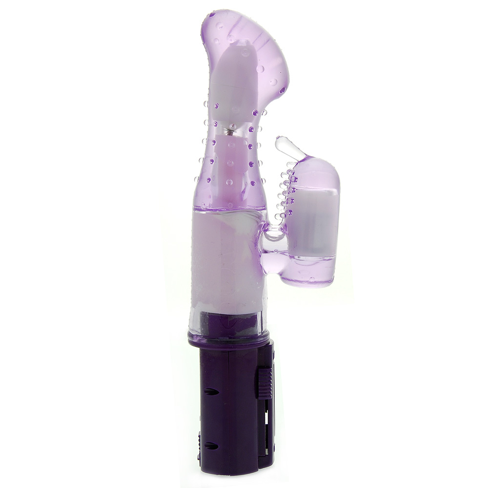 This translucent purple elastomer vibe has a a broader tickler than our Little Kiss, and a bulbous head for great g-spot stimulation.